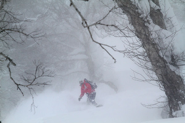 1日目は雪が深すぎて苦労しましたが、2日目は前日の雪が程よく締まった上に適度な新雪が積もったので板も良く走って楽しめました。