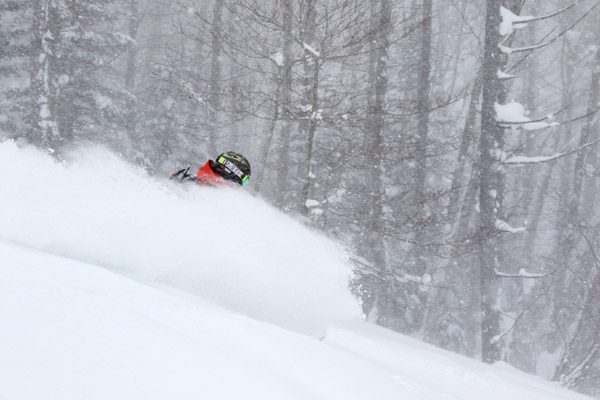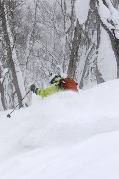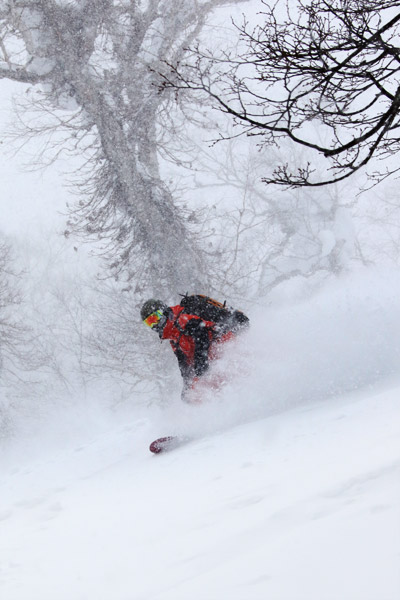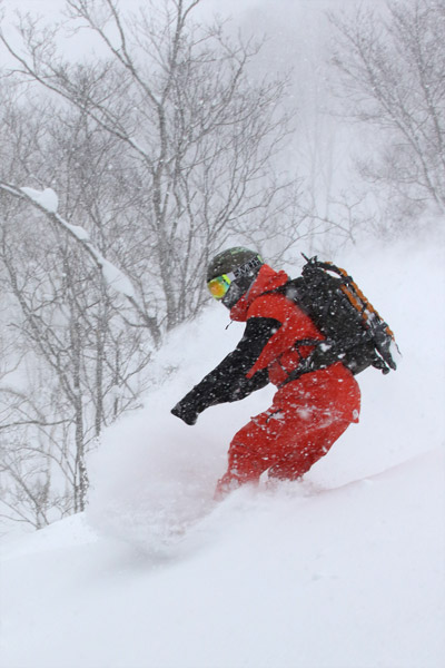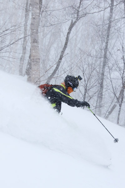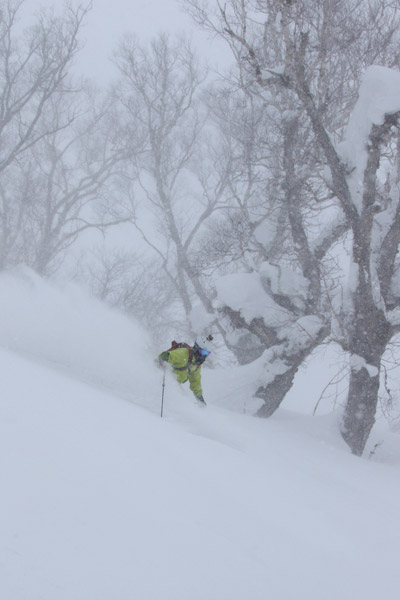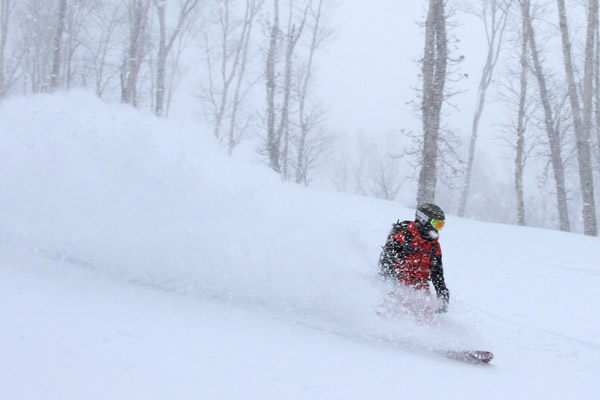 前日に到着して全然パウダーが無くてテンションの低かった3人でしたが、1本目の滑走で無事テンションアップ。
