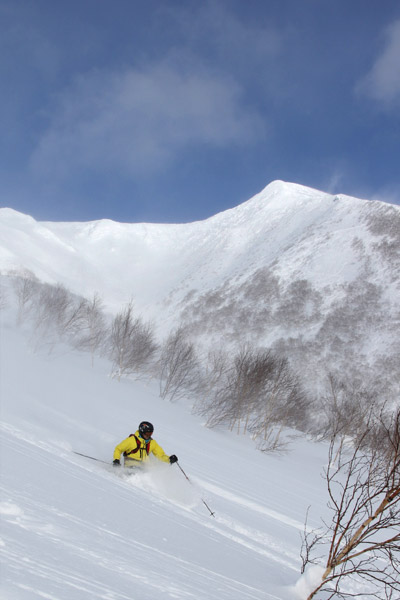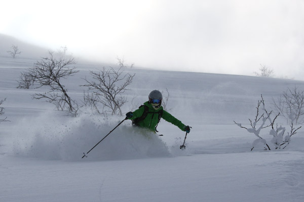 普段は旭川周辺で滑られているMさん。力強いスプレーです(女性です)