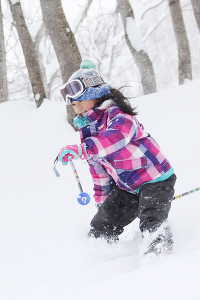 初体験のパウダースノーをとても楽しそうに笑顔で滑っていました。